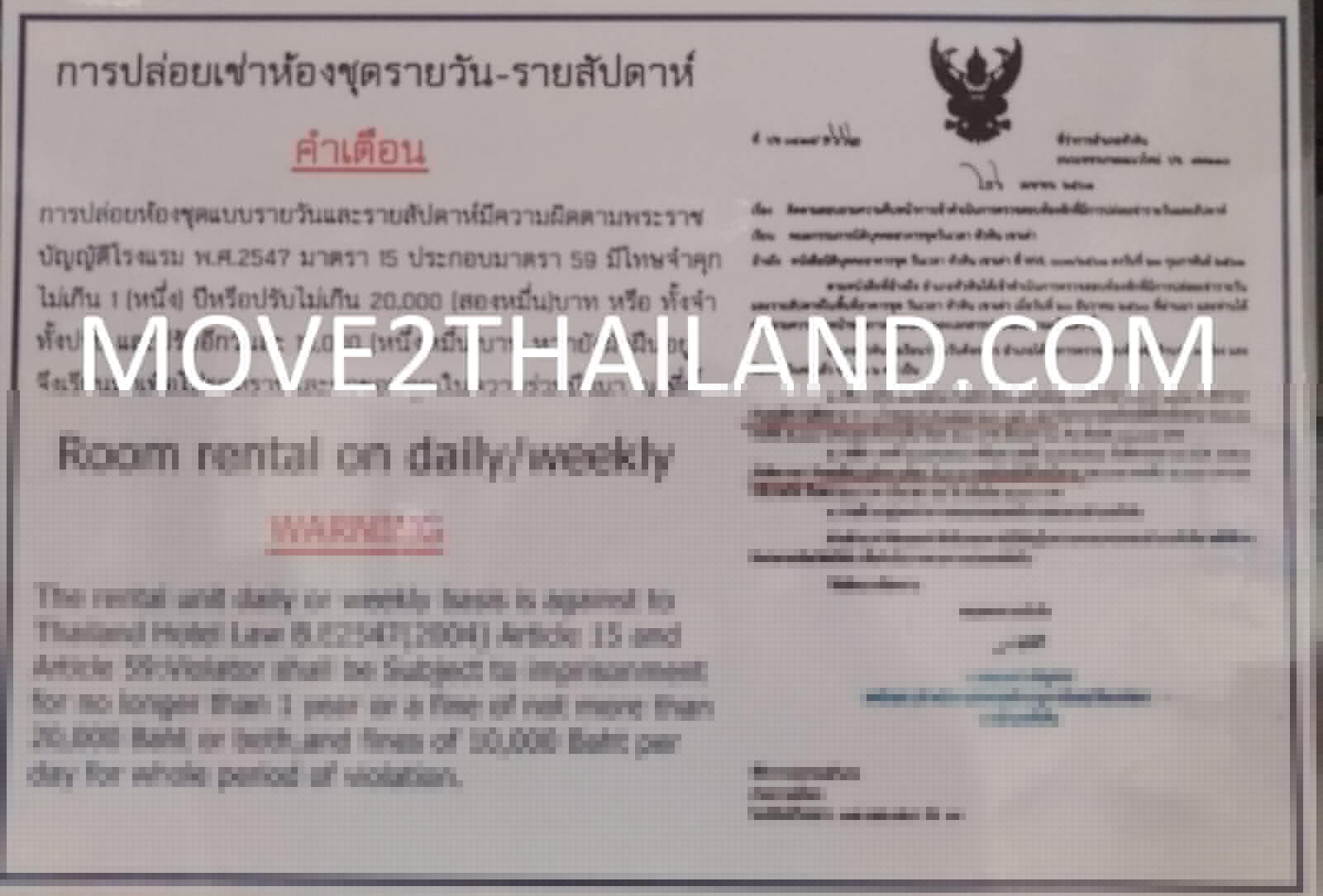 It is illegal to rent out a unit on a daily/weekly basis because it violates Thailand Hotel Law B.E.2547 (2004) Article 15 and Article 59. Violator is subject to imprisonment for no longer than 1 year or a fine of not more than 20000 baht or both and fines of 10000 baht per day for whole period of vRead more