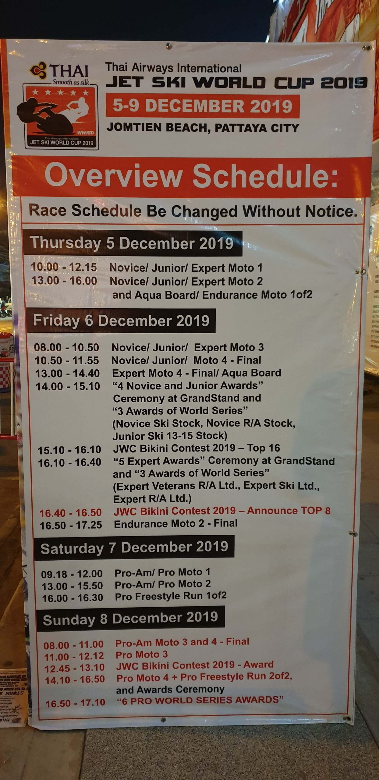 Schedule of Jet Ski World Cup 2019 in Pattaya